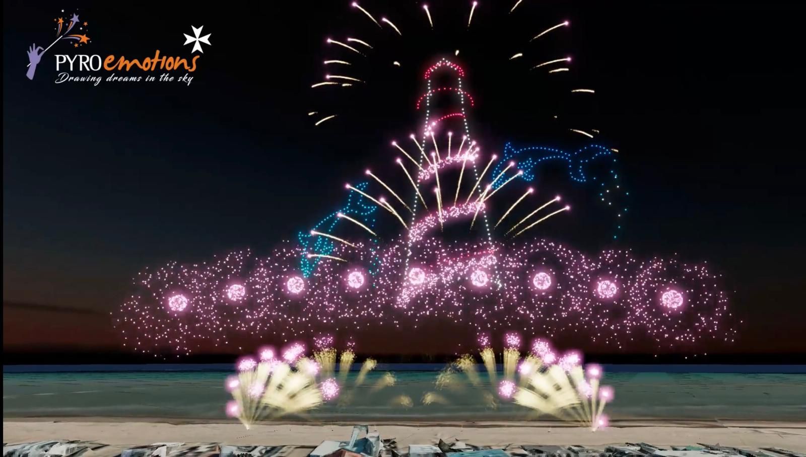 Per la prima volta sulla Riviera, una flotta di droni appositamente progettati sarà protagonista di uno spettacolo innovativo: i dispositivi voleranno in formazione rilasciando effetti pirotecnici controllati direttamente in aria. Il tutto sarà sincronizzato con musica, luci e fuochi tradizionali, dando vita a figure luminose, cascate di scintille e scenografie aeree di forte impatto visivo.