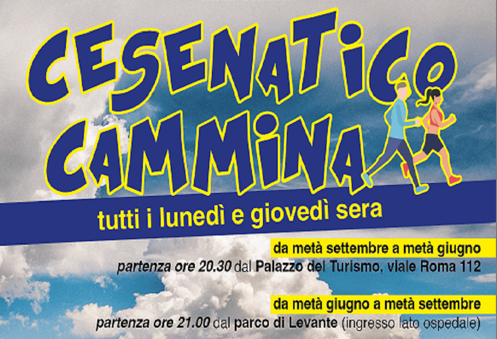 I camminatori e gli appassionati di walking si ritrovano due volte a settimana al Palazzo del turismo “Primo Grassi” in viale Roma, nel centro di Cesenatico, per “Cesenatico cammina”, un progetto che prevede uscite serali tutti i lunedì e i giovedì da metà settembre a metà giugno, con ritrovo alle 20.30. La proposta è di partecipare a camminate che fanno tanto bene alla salute, prevengono malattie cardiocircolatorie e metaboliche, e promuovono un’aggregazione sociale che prenda spunto dai valori dello sport. I percorsi sono da 8/10 Km e della durata di 2 ore circa.