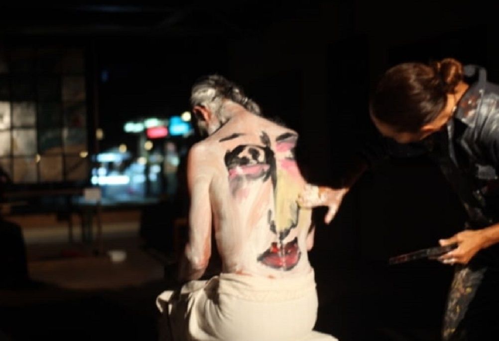Musica, Corpo e Pittura si incontrano in una Danza dell’improvviso che si offre, si fa materia e segno, impronta effimera eppure visibile.